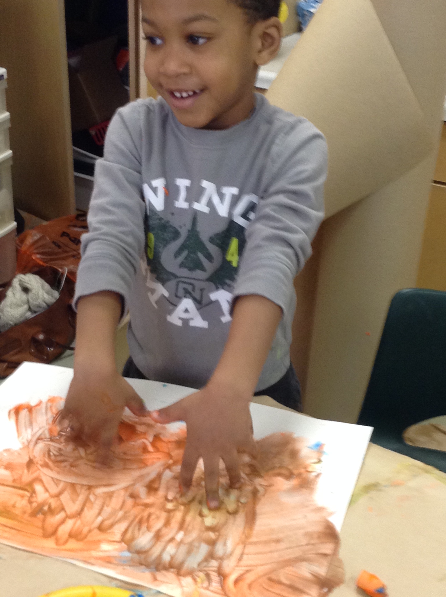 I asked him what happy hands might look like on the paper. Both boys broke into big grins and started jumping their fingers up and down and up and down.
