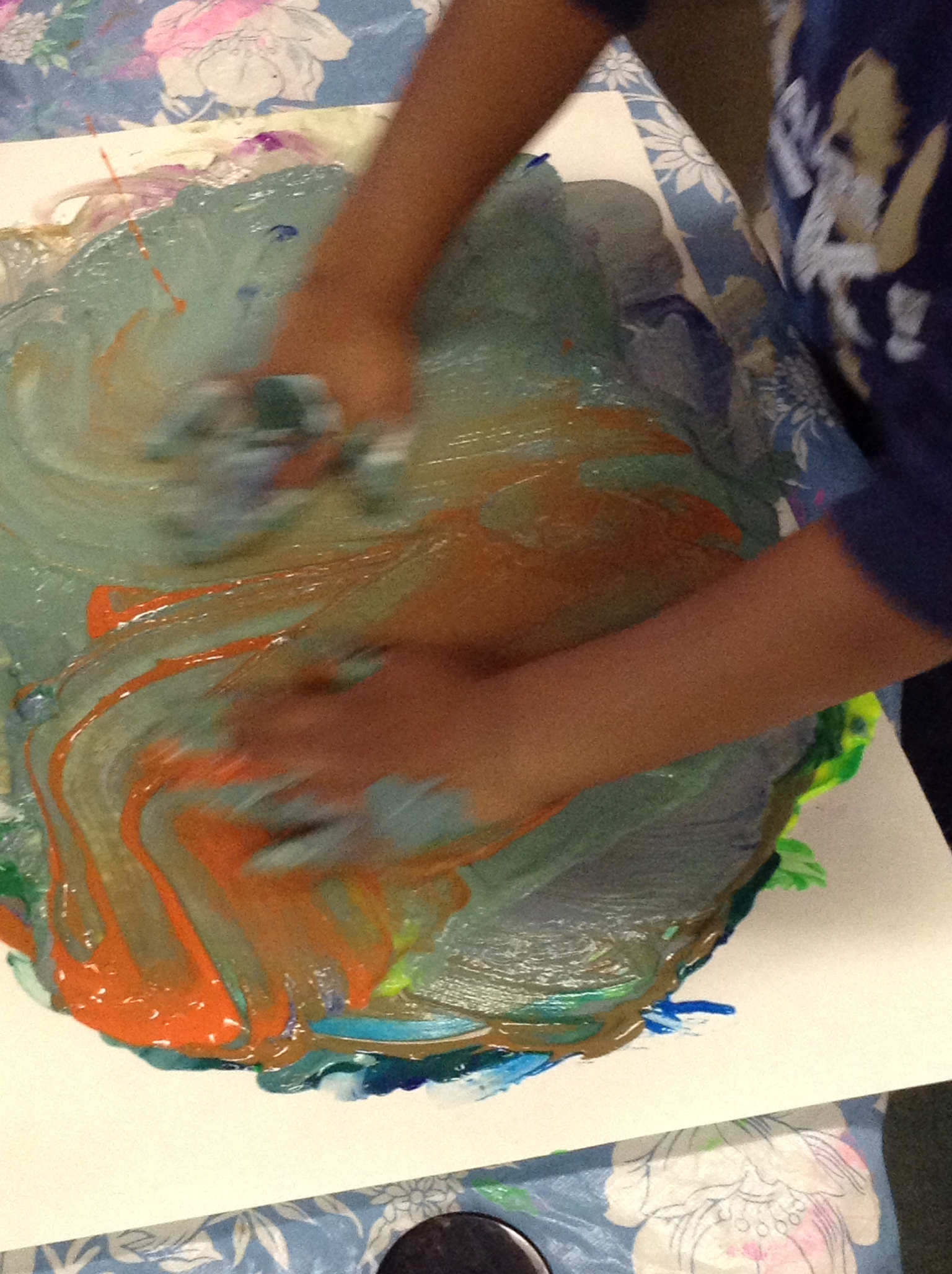 Little Mr. J squealed with delight as he began to mix the blue and yellow paint together.